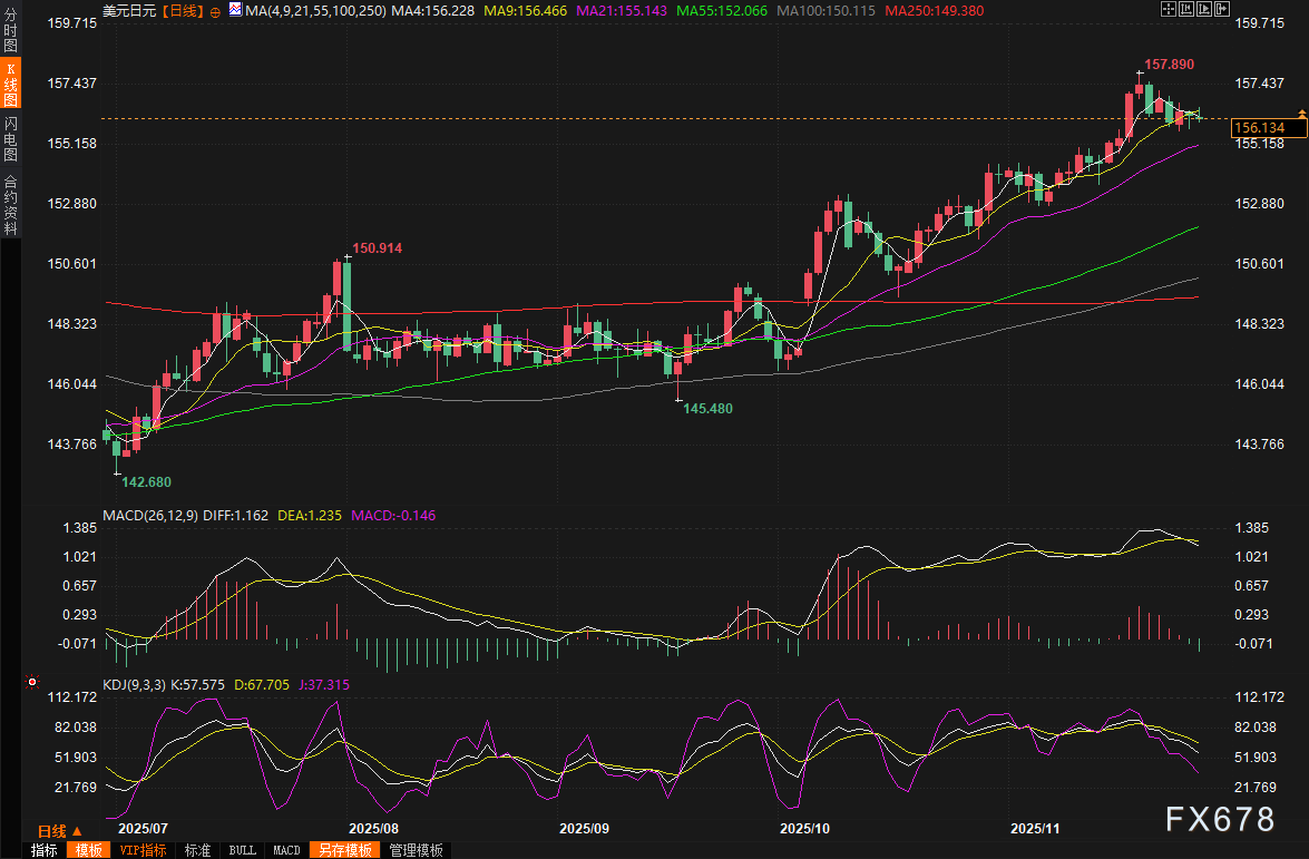 消息人士透露,日本央行正为12月可能升息做准备,重申鹰派立场,以应对日元急剧下跌和政治压力的减弱,这一度推动日元走高,但随后回落。周五,美元兑日元下跌0.1%至156.13。